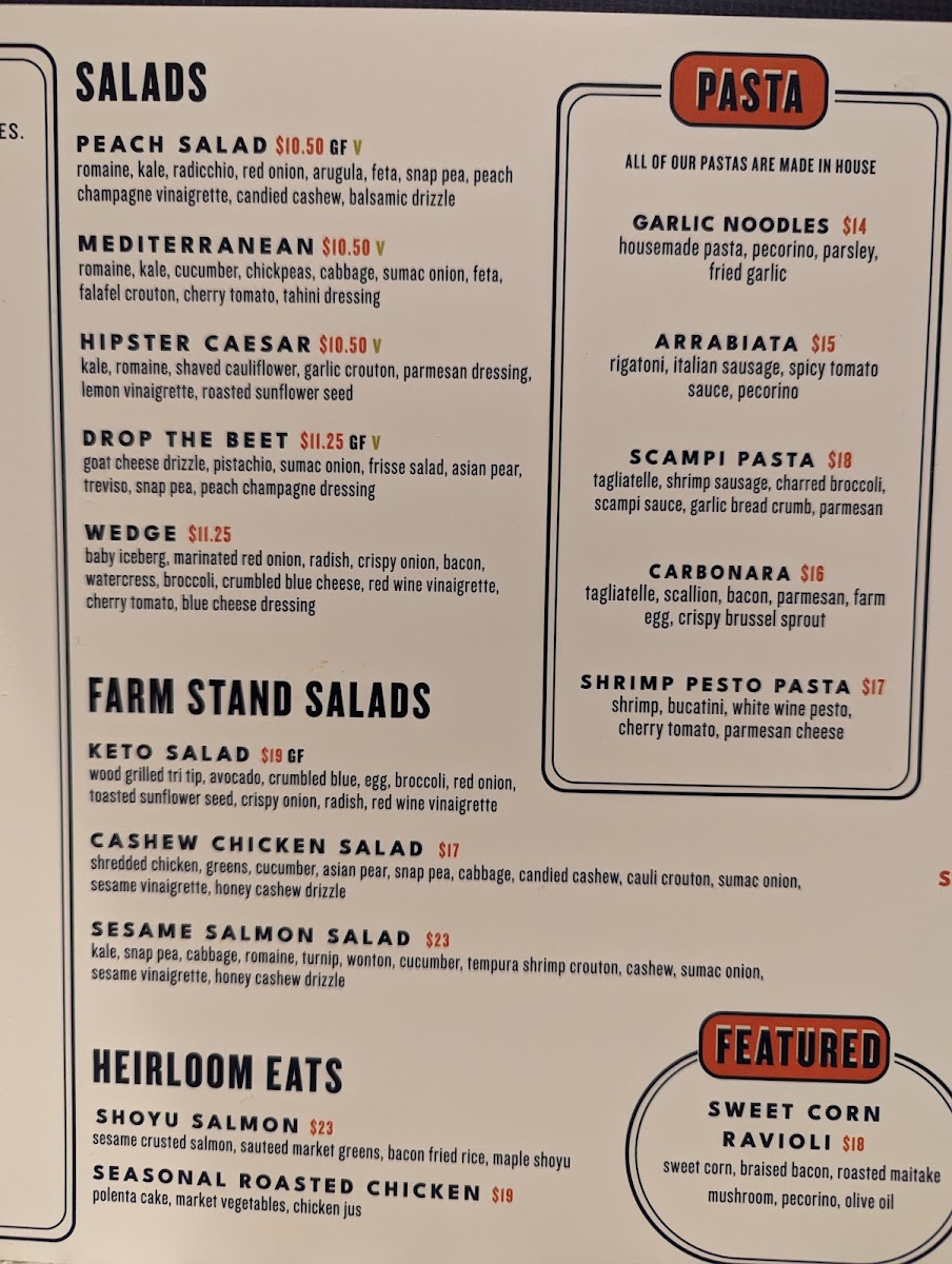 Heirloom offers a thoughtfully curated menu that blends casual comfort with sophisticated flavors, perfect for relaxing meals or shared moments with friends and family. The selection includes a variety of approachable dishes that range from light, fresh salads to hearty, wood-grilled proteins served family-style, creating an inviting experience for any time of day.